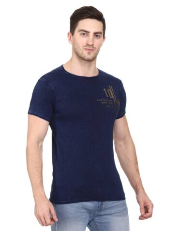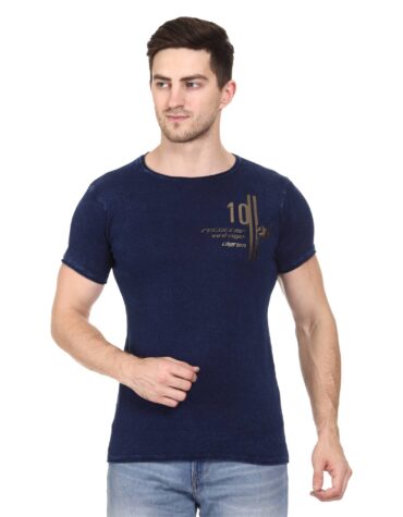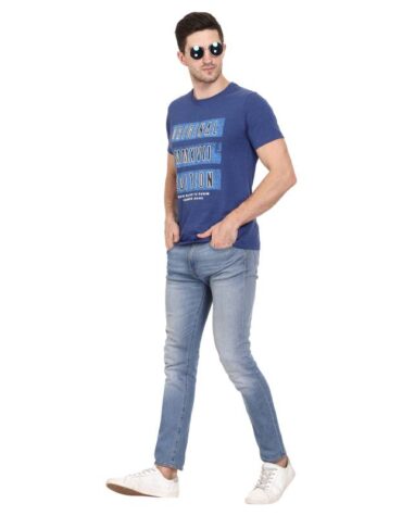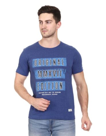 Recorrer Men’s Graphic Print Round Neck Blue T-Shirt