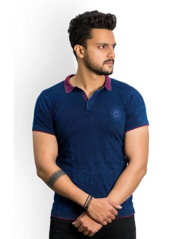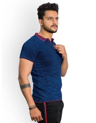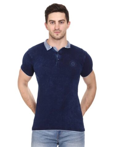 Recorrer Solid Men Polo Neck Blue T-Shirt