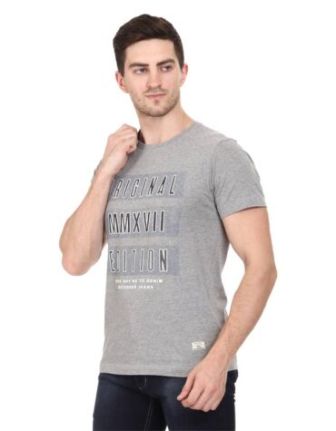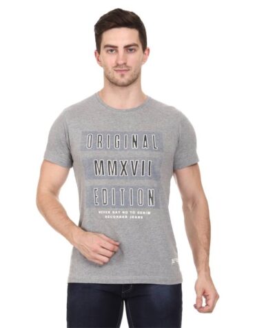 Recorrer Graphic Print Men Round Neck Grey T-Shirt