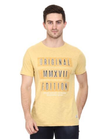 Recorrer Graphic Print Men Round Neck Yellow T-Shirt