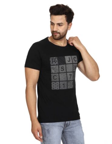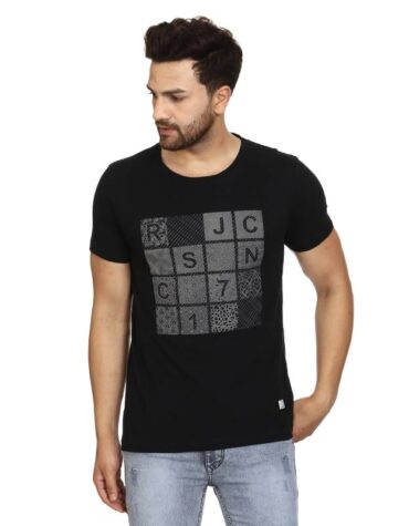 Recorrer Men Round Neck Black T-Shirt